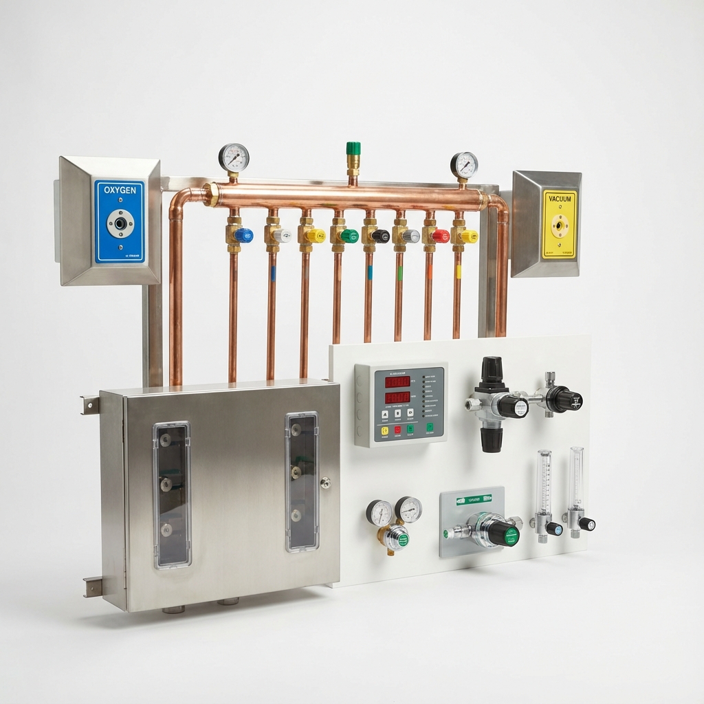 Sistem distribusi gas medis terpusat untuk rumah sakit dengan standar internasional HTM 02-01 dan NFPA 99.