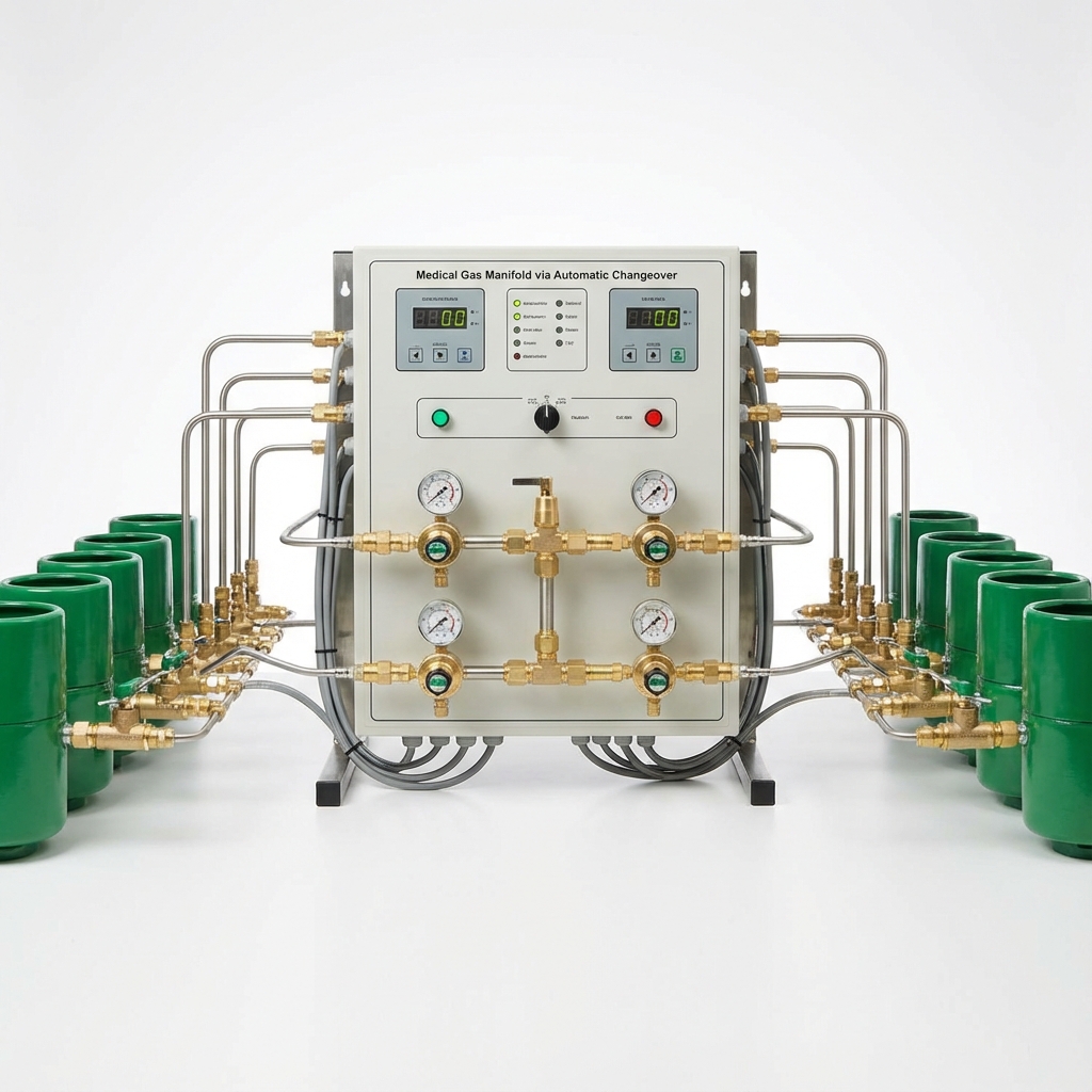 Sistem manifold otomatis untuk pengaturan dan distribusi gas medis dari tabung ke sistem pipa rumah sakit.